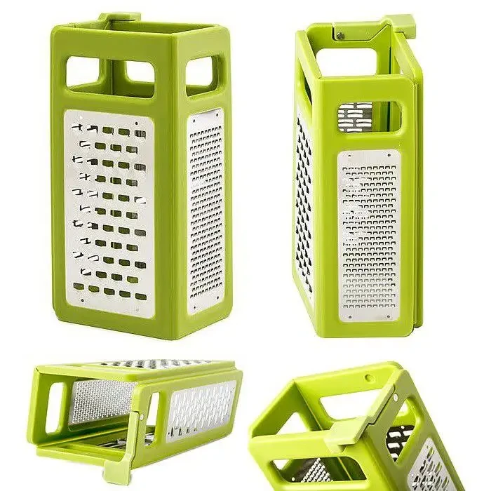 Upgrade your kitchen with the Divik 4-in-1 Fold Box Grater, the all-in-one tool for slicing, shredding, grating, and ribbon-cutting vegetables, fruits, and cheese with ease. Designed with both efficiency and convenience in mind, this compact grater features four interchangeable stainless steel blades built into a foldable box design, allowing for neat storage and easy cleaning.