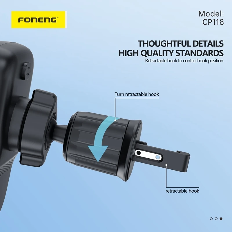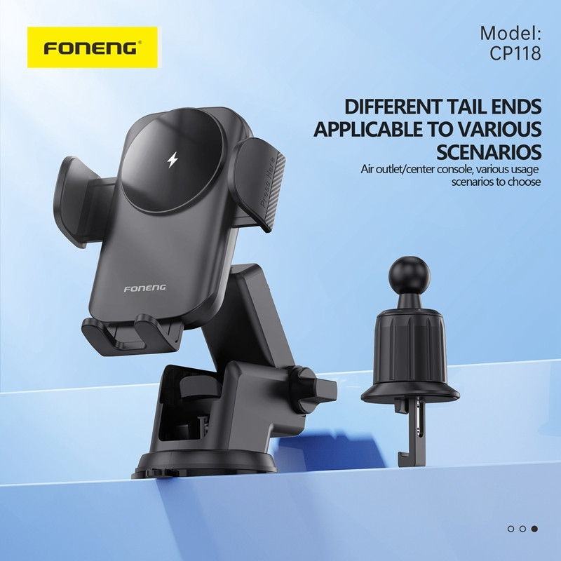 Say hello to hassle-free driving and high-speed charging with the FONENG CP118 – a premium 15W wireless charging car phone holder designed to keep your phone secure, visible, and powered up while you focus on the road. Whether you're navigating, streaming, or taking hands-free calls, the CP118 ensures your phone stays charged and stable, even on rough roads.