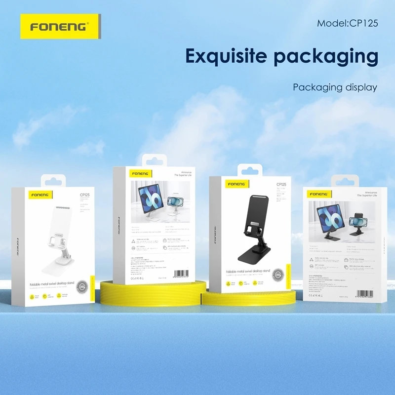 The FONENG CP125 is a stylish and ultra-functional desktop phone holder designed for everyday use at home, work, or on the go. Crafted with a durable metal body, this foldable and fully rotatable stand offers perfect ergonomics, hands-free convenience, and universal compatibility—all in one compact design.
