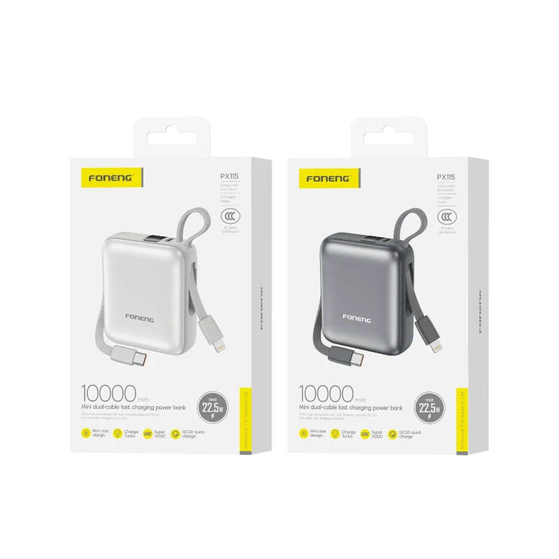 Slim, smart, and super efficient – the PX115 Power Bank is your everyday charging essential. Designed for users who want power in a pocket-friendly form, it delivers fast charging performance with a stylish finish and easy portability.