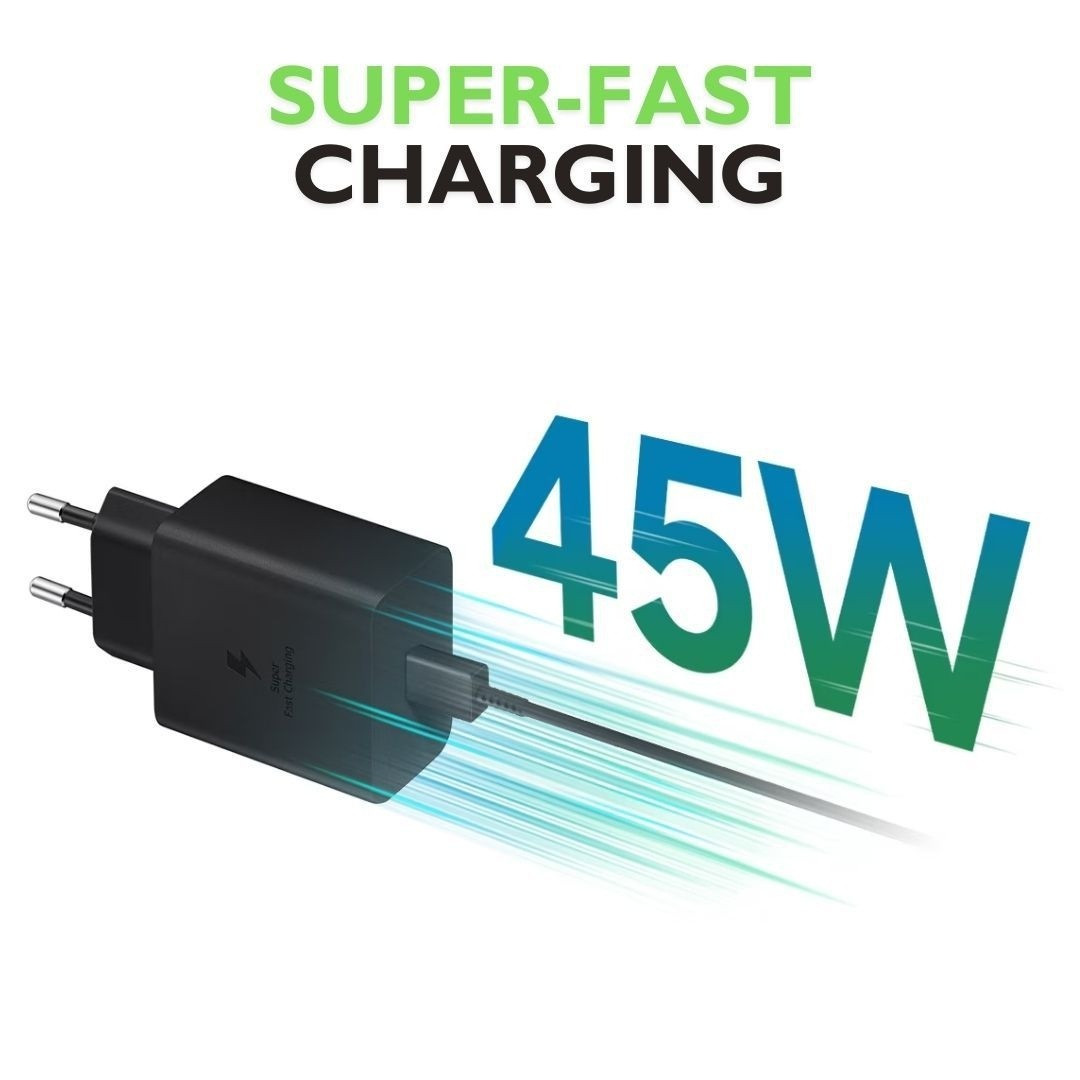 Power up your device in record time with this 45W USB-C Super Fast Charger, engineered to deliver blazing-fast and safe charging for a wide range of USB-C devices. Specifically optimized for Samsung’s Super Fast Charging technology, it supports flagship models like the Galaxy S23, S22, S21, Note 20, S20 Series, A Series, and more.