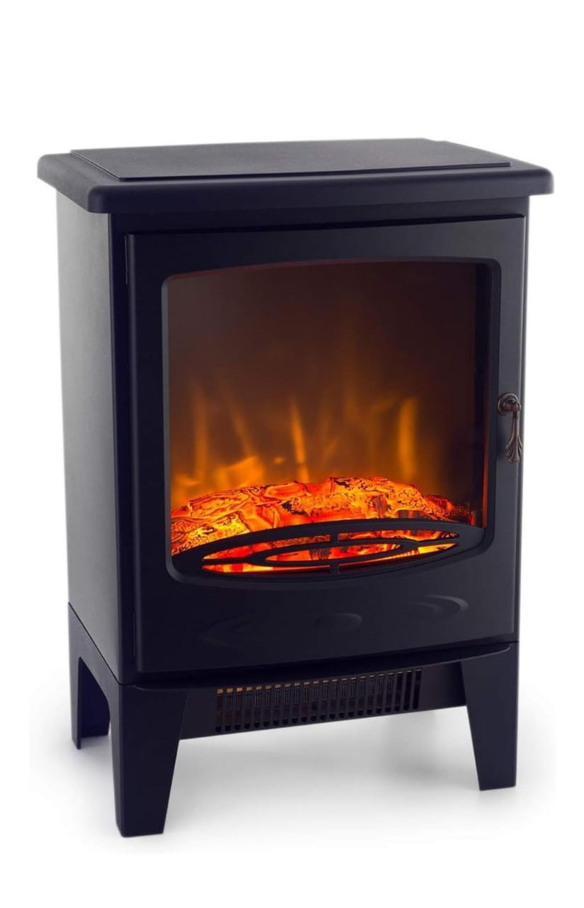 Adjust the temperature to your comfort using the continuously variable thermostat control, conveniently located behind the stylish oven-style door. Designed for both function and flair, the cast-iron look finish blends seamlessly with any decor, delivering classic elegance and modern heating in one.