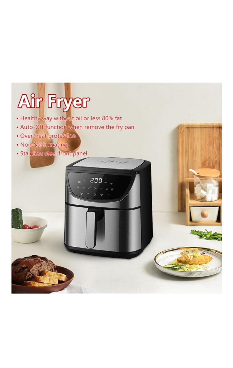 Built to blend style with function, the stainless steel front panel adds a touch of elegance to any countertop while ensuring long-term durability. Its compact footprint (315 x 395 x 330 mm) makes it a perfect fit for any kitchen size. With 1800W of power and wide voltage support (220–240V, 50/60Hz), this air fryer heats up rapidly and cooks meals efficiently, making your kitchen time shorter and sweeter.