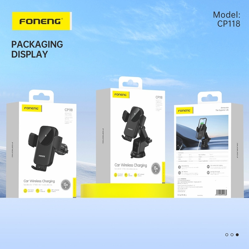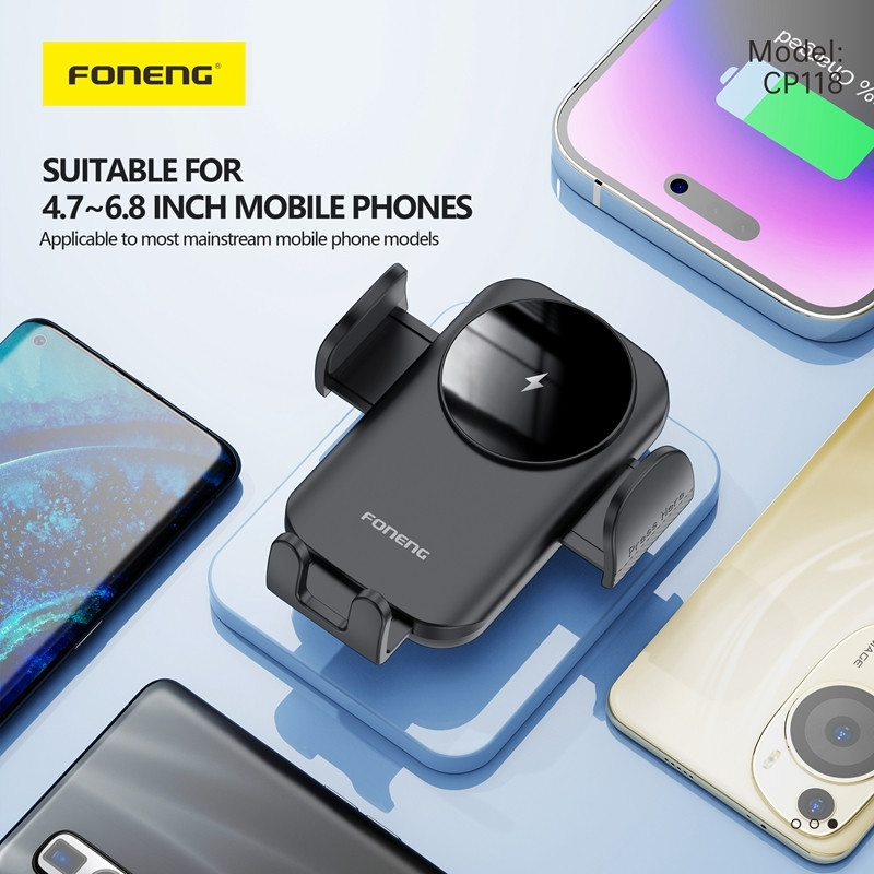 Say hello to hassle-free driving and high-speed charging with the FONENG CP118 – a premium 15W wireless charging car phone holder designed to keep your phone secure, visible, and powered up while you focus on the road. Whether you're navigating, streaming, or taking hands-free calls, the CP118 ensures your phone stays charged and stable, even on rough roads.