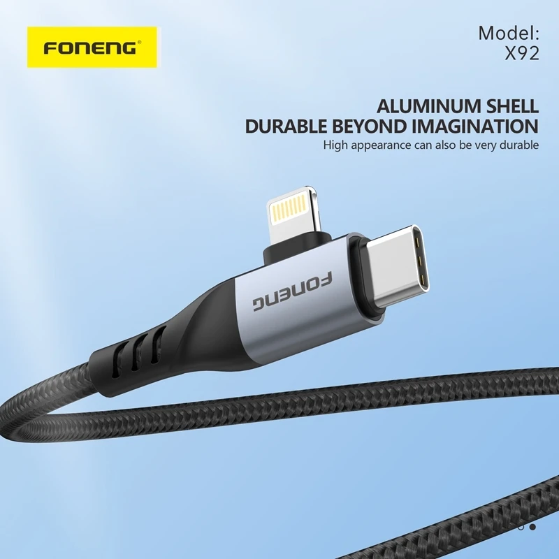 The FONENG X92 is a 4-in-1 premium charging cable designed for users who demand versatility, durability, and speed. With four powerful connectors, 60W fast charging support, and an ultra-durable metal head with braided exterior, the X92 is built to handle everything — from smartphones and tablets to laptops and power banks. Say goodbye to carrying multiple cables. With the FONENG X92, you get maximum compatibility in one sleek solution.