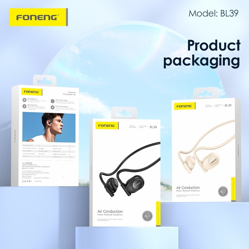 Introducing the FONENG BL39, a next-generation air conduction Bluetooth earphone designed for fitness, freedom, and full awareness. With its open-ear design, lightweight build, and crystal-clear sound, the BL39 is the ultimate choice for athletes, commuters, and anyone who moves.