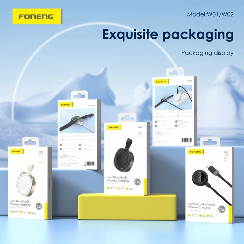 The FONENG W02 is a magnetic wireless charger designed with a private mold appearance and thick wire diameter, ensuring a strong and secure connection. The ABS shell and safe charging technology prevent the device from overheating, making it an ideal choice for charging the entire Apple Watch series. With its strong magnetic suction and safe charging capabilities, this charger combines both practical and value attributes to provide a reliable and efficient charging solution for Apple Watch users.