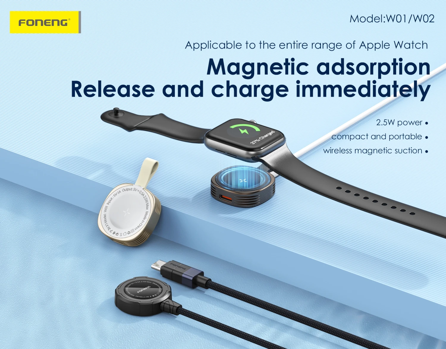 Whether you're upgrading your workspace or packing light for your next adventure, the FONENG W02 Magnetic Wireless Charger is your perfect companion for Apple Watch charging—sleek in design, strong in performance, and smart in every detail.