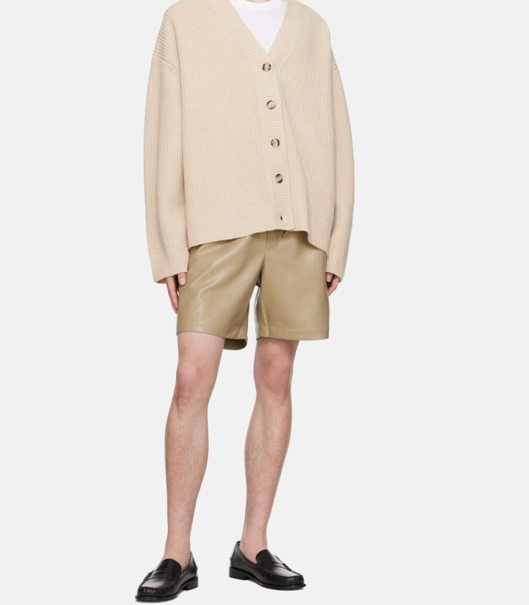 Elevate your casual style with our Men’s Beige Leather Shorts, combining contemporary aesthetics with everyday comfort. Expertly crafted from premium leather, these shorts feature a modern fit and functional design, making them a versatile addition to any wardrobe.