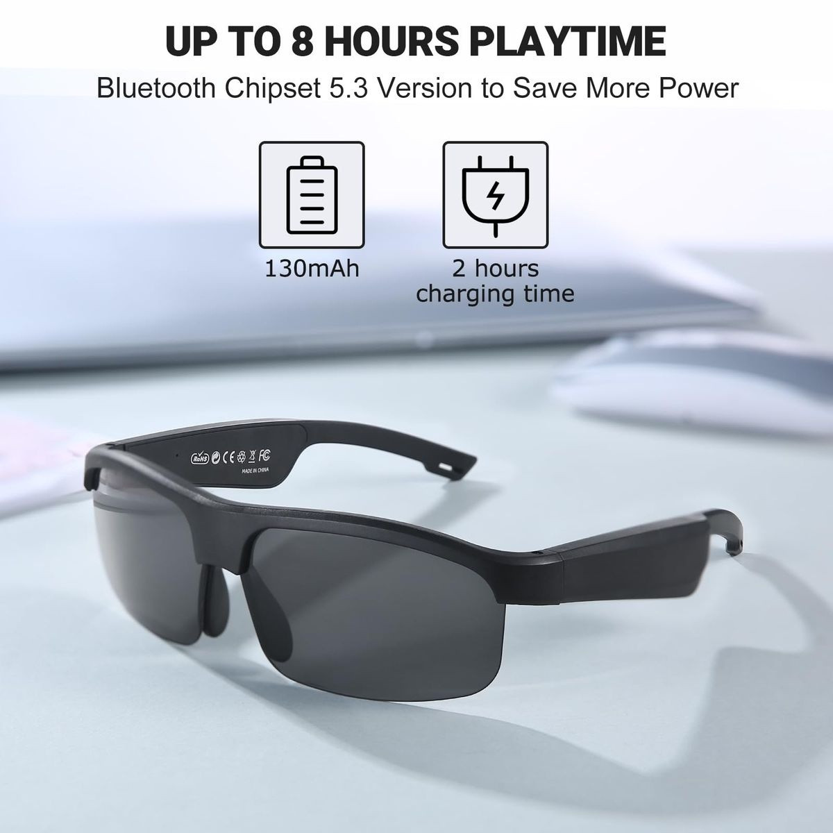 Featuring a built-in microphone and speakers, these smart glasses let you take calls, listen to music, and interact with your voice assistant completely hands-free. The powerful multifunctional button makes controlling music, calls, and voice commands easy and convenient.